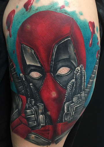 Deadpool, Tattoo by Basti Butcher, Tätowierer im Tempel München Tattoostudio