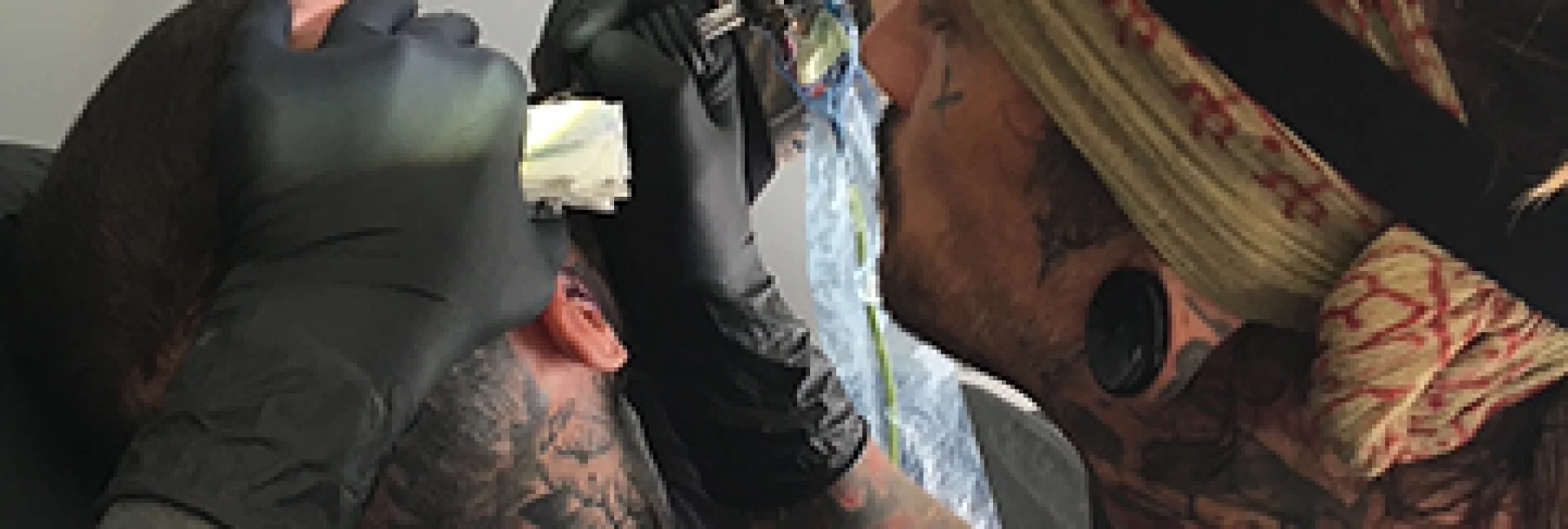 Tätowierer beim Tattoo stechen (Symbolbild)