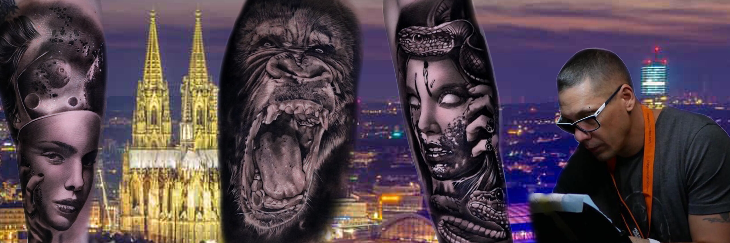 Mima und Igor sind spezialisiert auf Tattoos in Black ´n Grey Realistic. Sie tätowieren also am liebsten fotorealistische Motive in schwarz/weiß bzw. schwarz grau. Egal ob ein menschliches oder tierisches Portrait oder große Projekte die ganze Geschichten erzählen. Die beiden Tätowierer setzen alles in perfekter Qualität um. Igor findet ihr im Tempel in den Pasing Arcaden in München, von ihm ist auch das Beitragsbild.