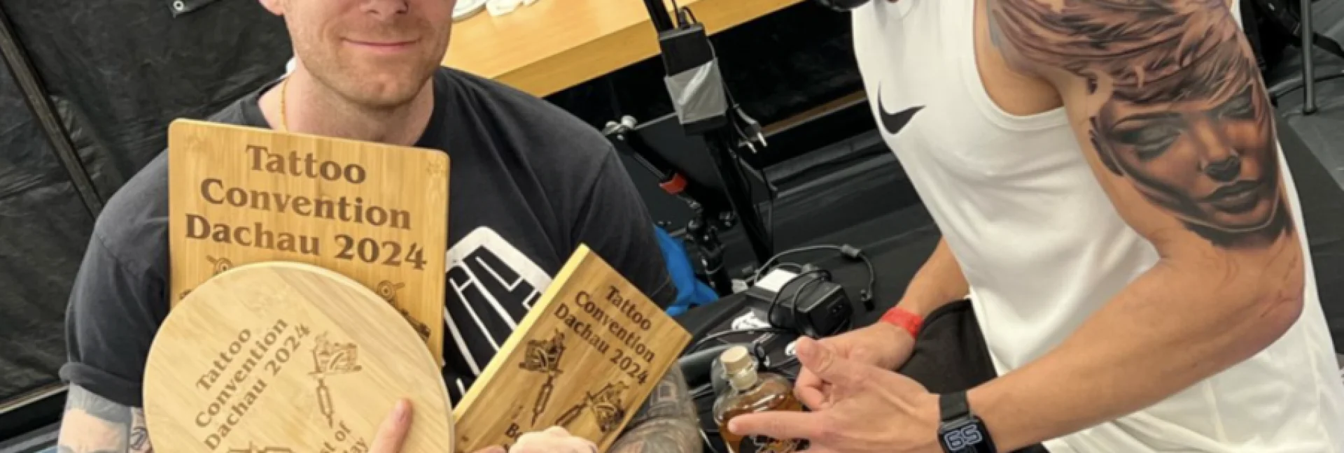 Milan Kolonics (Mima) vom Tempel München mit drei ersten Plätzen auf der Tattoomesse Dachau