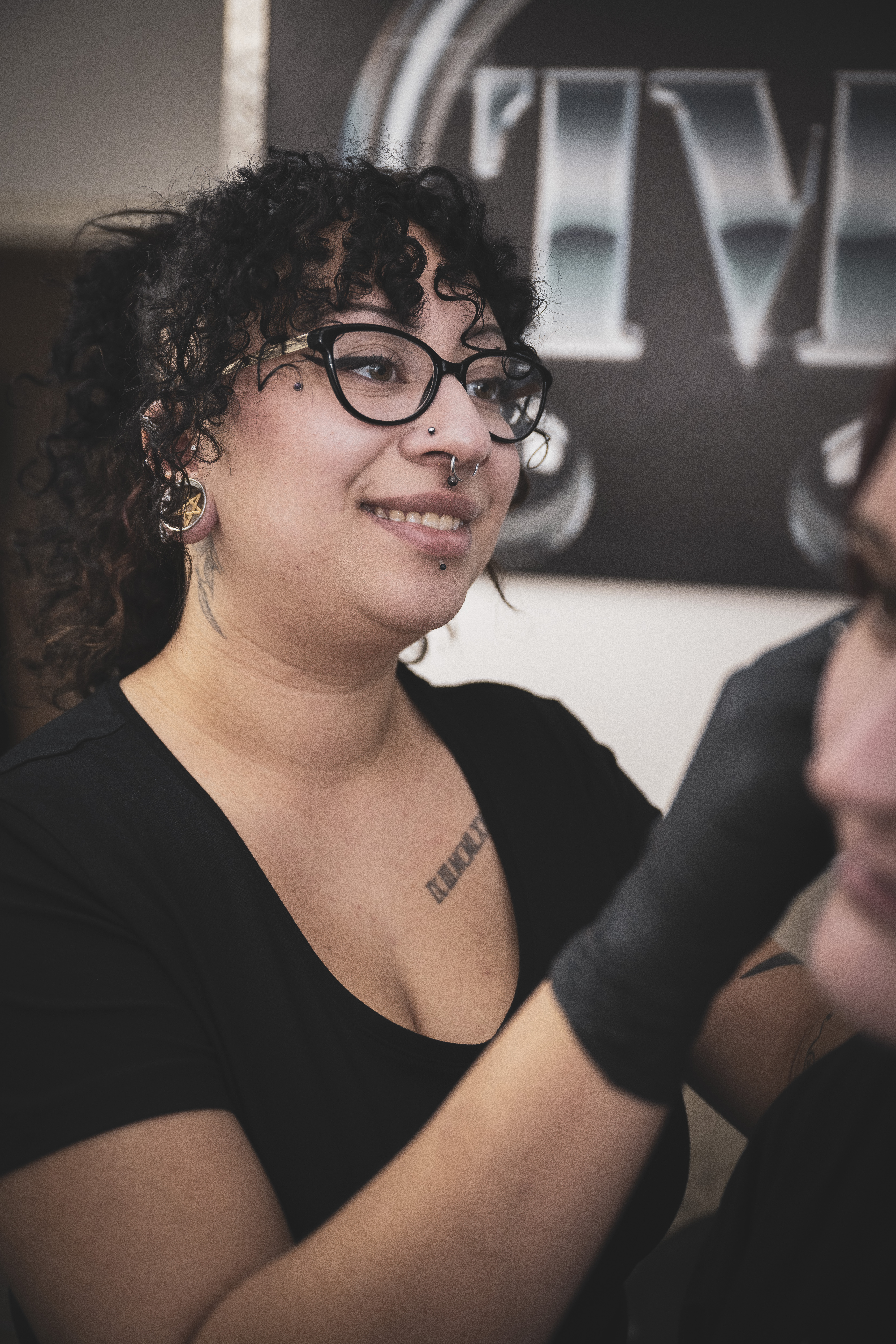 Piercerin Chelsea aus dem Tempel München Piercingstudio bei der Arbeit