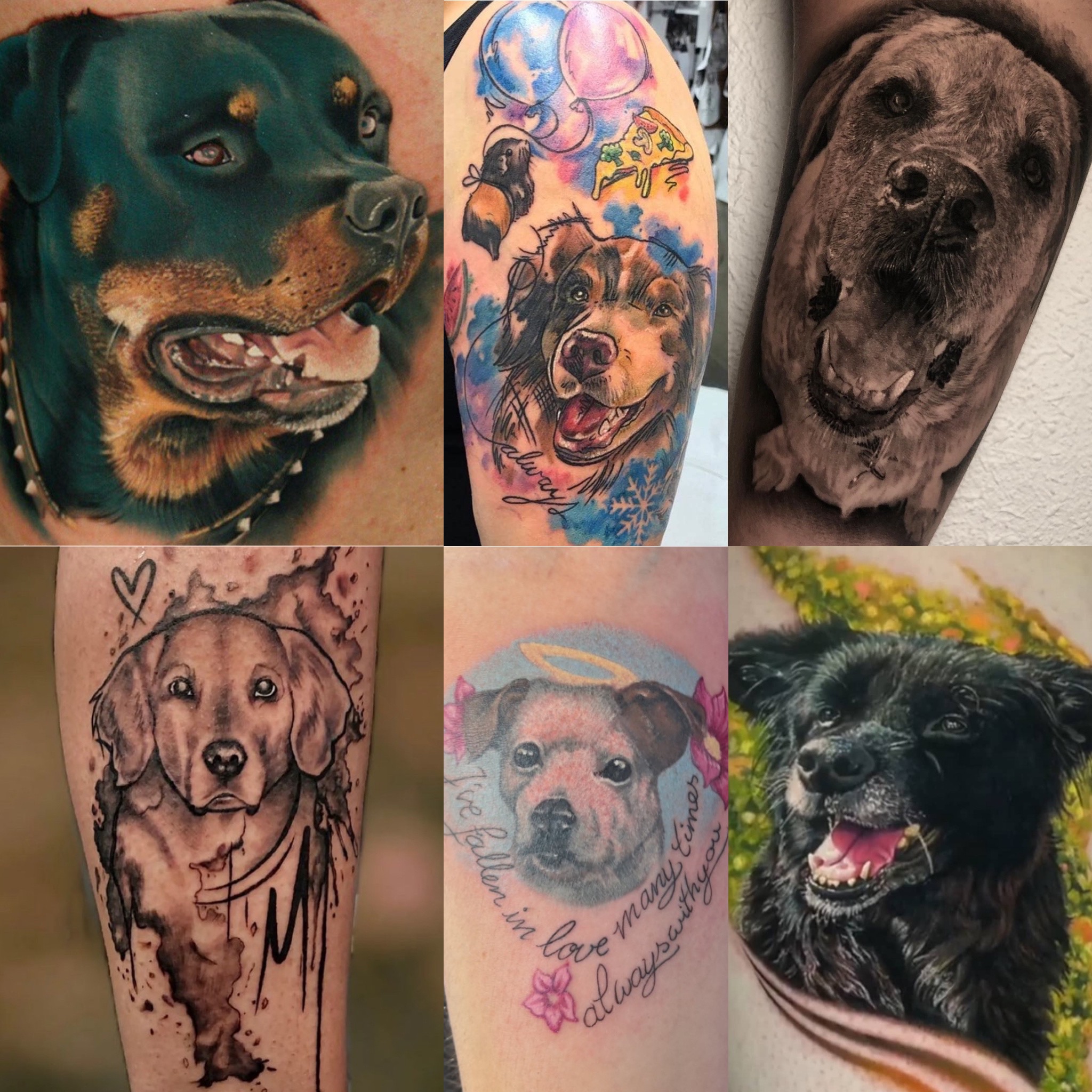 Diese Tätowierungen von Hunden wurden in unterschiedlichen Tattoostilen tätowiert